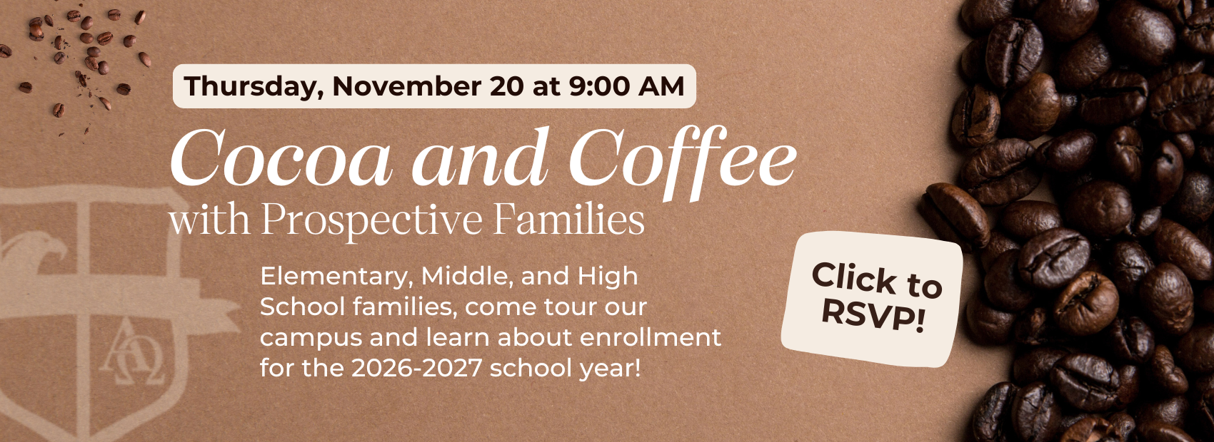 November 20, 2025 at 9:00 am - Cocoa and Coffee with Prospective Families