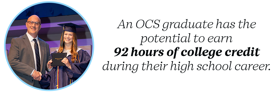 Ovilla Christian School offers dual-credit classes to high school students in partnership with Dallas Baptist, an intentionally Christ-centered university whose focus is to please God above all else and to develop Christian servant leaders through a transformative educational experience. Beginning sophomore year, this dual-enrollment program allows students to earn college credit in conjunction with their high school coursework.